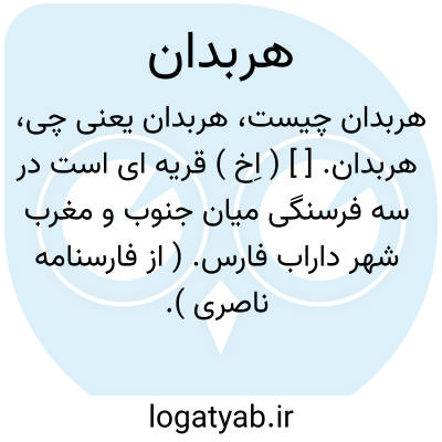 لغت نامه دهخدا هربدان. [ ] ( اِخ ) قریه ای است در سه فرسنگی میان جنوب و مغرب شهر داراب فارس. ( از فارسنامه ناصری ).