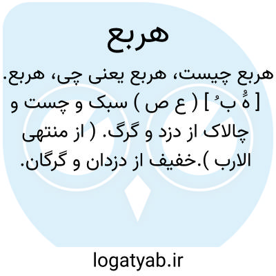 هربع. [ هَُ ب ُ ] ( ع ص ) سبک و چست و چالاک از دزد و گرگ. ( از منتهی الارب ).خفیف از دزدان و گرگان. ج، هرابع. ( اقرب الموارد ).