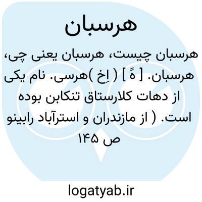 هرسبان. [ هََ ] ( اِخ )هرسی. نام یکی از دهات کلارستاق تنکابن بوده است. ( از مازندران و استرآباد رابینو ص 145 ترجمه فارسی ).