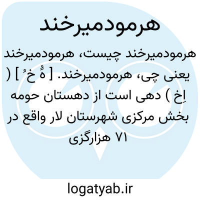 هرمودمیرخند. [ هَُ خ ُ ] ( اِخ ) دهی است از دهستان حومه بخش مرکزی شهرستان لار واقع در 71 هزارگزی جنوب خاوری لار و کنار راه شوسه لار به بندرعباس جلگه ای است گرمسیر و دارای 308 تن سکنه. از چاه مشروب میشود. محصول عمده اش غله، خرما و لبنیات و کار مردم زراعت و گله داری و قالی بافی است. ( از فرهنگ جغرافیایی ایران ج 7 ).