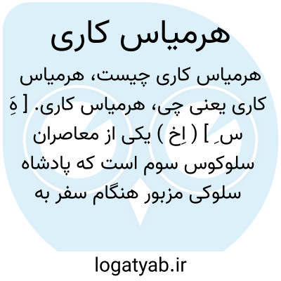 هرمیاس کاری. [ هَِ س ِ ] ( اِخ ) یکی از معاصران سلوکوس سوم است که پادشاه سلوکی مزبور هنگام سفر به آسیای صغیر او را - که در مقام وزیر اعظم بود - کفیل اداره قلمرو خود کرد. ( از ایران باستان پیرنیا ص 2078 ).