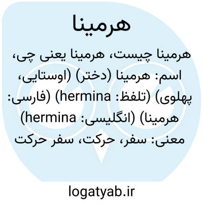 اسم: هرمینا (دختر) (اوستایی، پهلوی) (تلفظ: hermina) (فارسی: هرمینا) (انگلیسی: hermina)