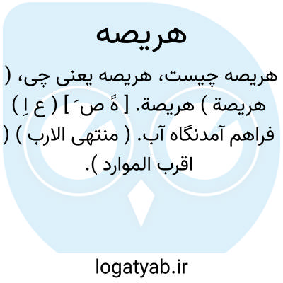 لغت نامه دهخدا ( هریصة ) هریصة. [ هََ ص َ ] ( ع اِ ) فراهم آمدنگاه آب. ( منتهی الارب ) ( اقرب الموارد ).