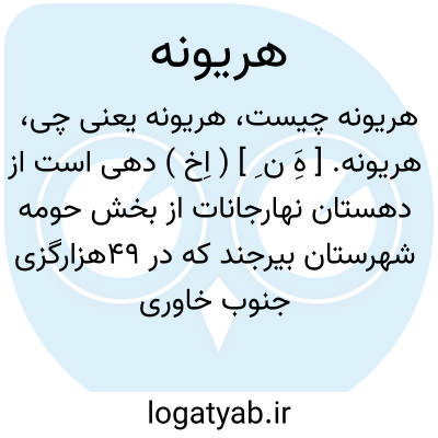 هریونه. [ هَِ ن ِ ] ( اِخ ) دهی است از دهستان نهارجانات از بخش حومه شهرستان بیرجند که در 49هزارگزی جنوب خاوری بیرجند واقع و جایی است کوهستانی و معتدل و دارای 292 تن سکنه. محصول عمده اش غله، گردو، بنشن و آب مشروب آن از قنات و کار مردم کشاورزی است. ( از فرهنگ جغرافیایی ایران ج 9 ).