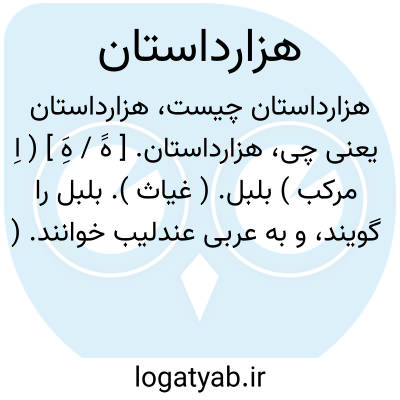 هزارداستان. [ هََ / هَِ ] ( اِ مرکب ) بلبل. ( غیاث ). بلبل را گویند، و به عربی عندلیب خوانند. ( برهان ). رجوع به هزاردستان و هزارآوا و هزار شود.