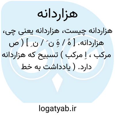 هزاردانه. [ هََ / هَِ ن َ / ن ِ ] ( ص مرکب، اِ مرکب ) تسبیح که هزاردانه دارد. ( یادداشت به خط مؤلف ). قسمی سبحه که عدد دانه های آن هزار است. ( یادداشت دیگر ):