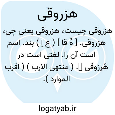 هزروقی. [ هَُ قا ] ( ع اِ ) بند. اسم است آن را. لغتی است در هُرزوقی ̍. ( منتهی الارب ) ( اقرب الموارد ).