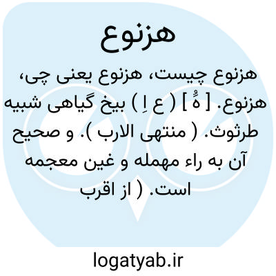 هزنوع. [ هَُ ] ( ع اِ ) بیخ گیاهی شبیه طرثوث. ( منتهی الارب ). و صحیح آن به راء مهمله و غین معجمه است. ( از اقرب الموارد ). رجوع به هرنوغ شود.
