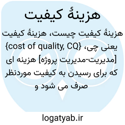 {cost of quality, CQ} [مدیریت-مدیریت پروژه] هزینه ای که برای رسیدن به کیفیت موردنظر صرف می شود و معمولاً مشتمل بر هزینۀ برنامه ریزی و واپایش و تضمین کیفیت است
