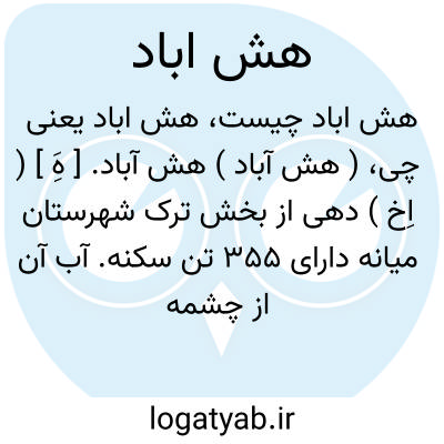( هش آباد ) هش آباد. [ هَِ ] ( اِخ ) دهی از بخش ترک شهرستان میانه دارای 355 تن سکنه. آب آن از چشمه و محصول آن غلات و حبوب است. ( از فرهنگ جغرافیائی ایران ج 4 ).
