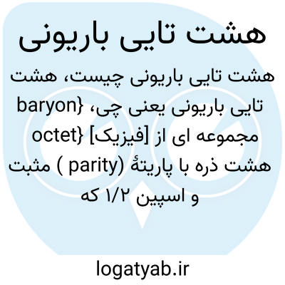 فرهنگستان زبان و ادب {baryon octet} [فیزیک] مجموعه ای از هشت ذره با پاریتۀ (parity ) مثبت و اسپین 1/2 که الگویی متقارن دارند