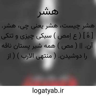 هشر. [ هََ ] ( ع اِمص ) سبکی چیزی و تنکی آن. || ( مص ) همه شیر پستان ناقه را دوشیدن. ( منتهی الارب ) ( از اقرب الموارد ).