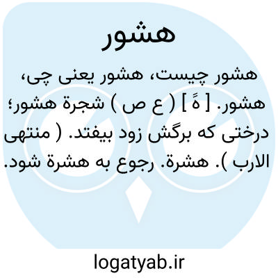 هشور. [ هََ ] ( ع ص ) شجرة هشور؛ درختی که برگش زود بیفتد. ( منتهی الارب ). هشرة. رجوع به هشرة شود.
