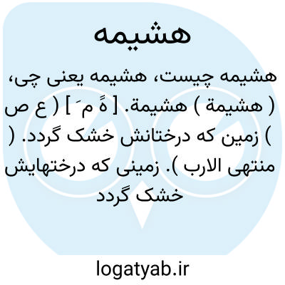 ( هشیمة ) هشیمة. [ هََ م َ ] ( ع ص ) زمین که درختانش خشک گردد. ( منتهی الارب ). زمینی که درختهایش خشک گردد چنانکه سیاه شود. || درخت خشک. ( از اقرب الموارد ).
