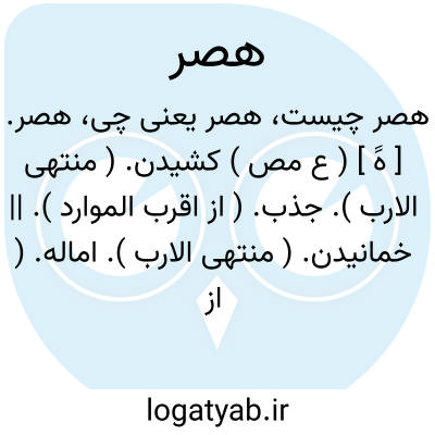 هصر. [ هََ ] ( ع مص ) کشیدن. ( منتهی الارب ). جذب. ( از اقرب الموارد ). || خمانیدن. ( منتهی الارب ). اماله. ( از اقرب الموارد ). || شکستن. || پیچیدن چیز تر و تازه همچو شاخ درخت و مانندآن را بی جدایی، یا عام است. ( منتهی الارب ) ( از اقرب الموارد ). || پیچیدن هر چیزی را. ( منتهی الارب ). || به تیر زدن همباز را. || شکستن شیر فَریسه خود را. ( از اقرب الموارد ).