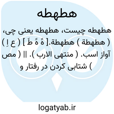 ( هطهطة ) هطهطة.[ هََ هََ طَ ] ( ع اِ ) آواز اسب. ( منتهی الارب ). || ( مص ) شتابی کردن در رفتار و کار. ( از اقرب الموارد ) ( منتهی الارب ). || آواز برآوردن اسب. || شتاب رفتن مرد. ( اقرب الموارد ).