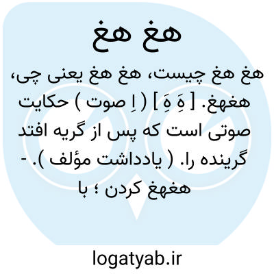 هغهغ. [ هَِ هَِ ] ( اِ صوت ) حکایت صوتی است که پس از گریه افتد گرینده را. ( یادداشت مؤلف ).