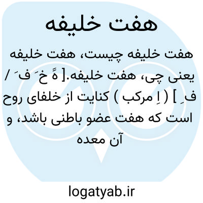 هفت خلیفه.[ هََ خ َ ف َ / ف ِ ] ( اِ مرکب ) کنایت از خلفای روح است که هفت عضو باطنی باشد، و آن معده و جگر و شُش و دل و زَهره و سپرز و گرده است. ( برهان ):