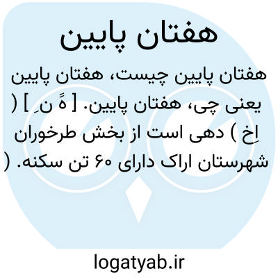 هفتان پایین. [ هََ ن ِ ] ( اِخ ) دهی است از بخش طرخوران شهرستان اراک دارای 60 تن سکنه. ( از فرهنگ جغرافیائی ایران ج 2 ).