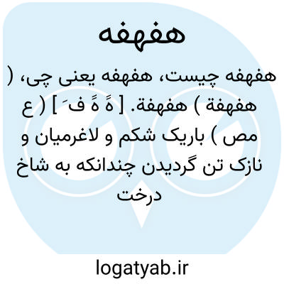 ( هفهفة ) هفهفة. [ هََ هََ ف َ ] ( ع مص ) باریک شکم و لاغرمیان و نازک تن گردیدن چندانکه به شاخ درخت ماند. ( منتهی الارب ) ( اقرب الموارد ).
