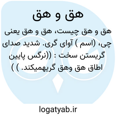 (اسم ) آوای گری. شدید صدای گریستن سخت: ((نرگس پایین اطاق هق وهق گریهمیکند. ) )