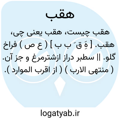 هقب. [ هَِ ق َ ب ب ] ( ع ص ) فراخ گلو. || سطبر دراز ازشترمرغ و جز آن. ( منتهی الارب ) ( از اقرب الموارد ).