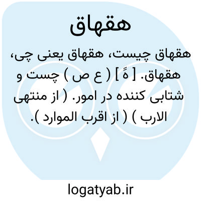 هقهاق. [ هََ ] ( ع ص ) چست و شتابی کننده در امور. ( از منتهی الارب ) ( از اقرب الموارد ).