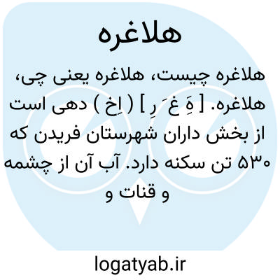 هلاغره. [ هَِ غ َ رِ ] ( اِخ ) دهی است از بخش داران شهرستان فریدن که 530 تن سکنه دارد. آب آن از چشمه و قنات و محصول عمده اش غله و عسل و کاردستی مردم بافتن قالی و جاجیم است. ( از فرهنگ جغرافیائی ایران ج 10 ).