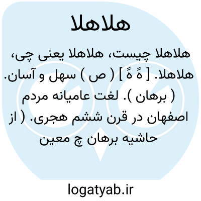 هلاهلا. [ هََ هََ ] ( ص ) سهل و آسان. ( برهان ). لغت عامیانه مردم اصفهان در قرن ششم هجری. ( از حاشیه برهان چ معین ):