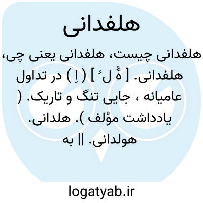 هلفدانی. [ هَُ ل ُ ] ( اِ ) در تداول عامیانه، جایی تنگ و تاریک. ( یادداشت مؤلف ). هلدانی. هولدانی. || به کنایه، زندان. ( یادداشت مؤلف ).