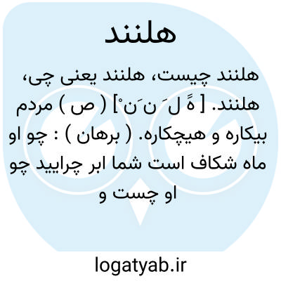 لغت نامه دهخدا هلنند. [ هََ ل َ ن َن ْ] ( ص ) مردم بیکاره و هیچکاره. ( برهان ): چو او ماه شکاف است شما ابر چراییدچو او چست و ظریف است شما چون هلنندید؟مولوی.