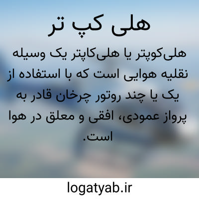 هلیکوپتر یا هلیکاپتر یک وسیله نقلیه هوایی است که با استفاده از یک یا چند روتور چرخان قادر به پرواز عمودی، افقی و معلق در هوا است. برخلاف هواپیماهای بال ثابت، هلیکوپتر میتواند در فضاهای کوچک و بدون باند فرود بلند شود و فرود بیاید.