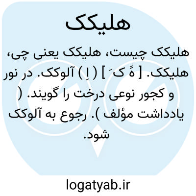 هلیکک. [ هََ ک َ ] ( اِ ) آلوکک. در نور و کجور نوعی درخت را گویند. ( یادداشت مؤلف ). رجوع به آلوکک شود.