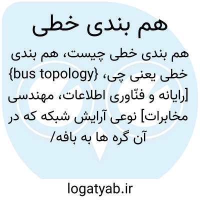 {bus topology} [رایانه و فنّاوری اطلاعات، مهندسی مخابرات] نوعی آرایش شبکه که در آن گره ها به بافه/ کابل منفردی متصل می شوند که در هر دو انتها دارای پایانه است