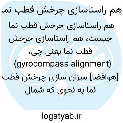 فرهنگستان زبان و ادب {gyrocompass alignment} [هوافضا] میزان سازی چرخش قطب نما به نحوی که شمال اندازه گیری شدۀ آن همان شمال واقعی باشد