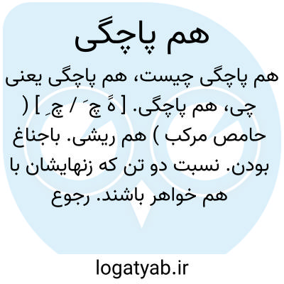هم پاچگی. [ هََ چ َ / چ ِ ] ( حامص مرکب ) هم ریشی. باجناغ بودن. نسبت دو تن که زنهایشان با هم خواهر باشند. رجوع به هم ریش و باجناغ شود.