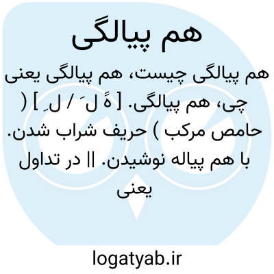 هم پیالگی. [ هََ ل َ / ل ِ ] ( حامص مرکب ) حریف شراب شدن. با هم پیاله نوشیدن. || در تداول یعنی نزدیکی و صمیمیت، چنانکه دو دوست با یکدیگر پیاله ای می گیرند. رجوع به هم پیاله شود.
