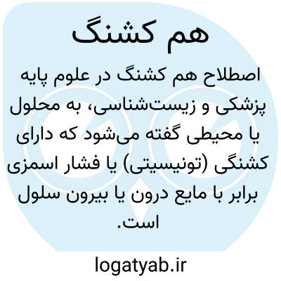 اصطلاح «هم‌ کِشَنگ» (به انگلیسی: isotonic) در علوم پایهٔ پزشکی و زیست‌شناسی، به محلول یا محیطی گفته می‌شود که دارای کشنگی (تونیسیتی) یا فشار اسمزی برابر با مایع درون یا بیرون سلول است. به زبان ساده، در یک محیط هم‌ کشنگ، میزان غلظت مواد حل‌شده (مانند نمک یا قند) در دو سوی غشای سلولی برابر است؛ بنابراین، هیچ تمایل خالصی برای ورود یا خروج آب از سلول وجود ندارد. در نتیجه، سلول در چنین محیطی اندازه و شکل طبیعی خود را حفظ می‌کند و نه متورم می‌شود و نه چروکیده.