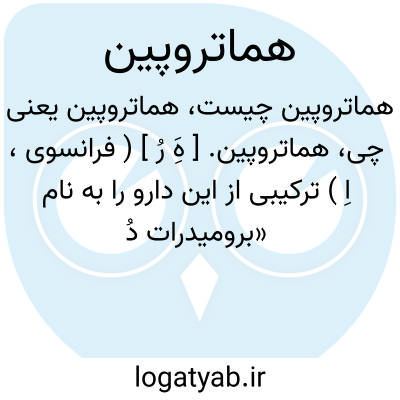 هماتروپین. [ هَِ رُ ] ( فرانسوی، اِ ) ترکیبی از این دارو را به نام «برومیدرات دُ هماتروپین » در چشم پزشکی به صورت محلول 2 در هزار به کار میبرند. ( از درمانشناسی ج 2 ).