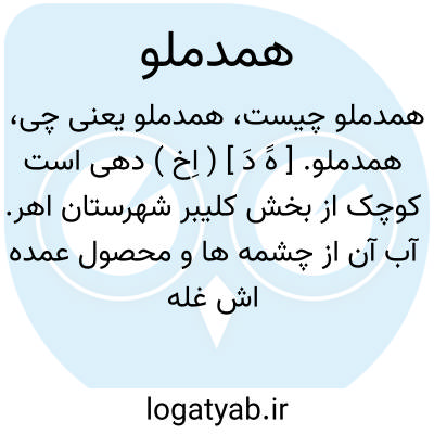 همدملو. [ هََ دَ ] ( اِخ ) دهی است کوچک از بخش کلیبر شهرستان اهر. آب آن از چشمه ها و محصول عمده اش غله است. ( از فرهنگ جغرافیائی ایران ج 4 ).