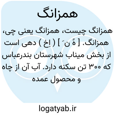 همزانگ. [ هََ ن َ ] ( اِخ ) دهی است از بخش میناب شهرستان بندرعباس که 300 تن سکنه دارد. آب آن از چاه و محصول عمده اش غله و خرماست. ( از فرهنگ جغرافیائی ایران ج 6 ).