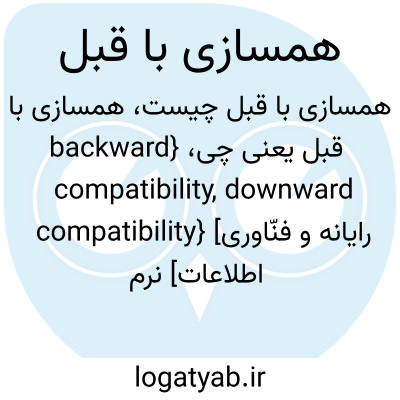{backward compatibility, downward compatibility} [رایانه و فنّاوری اطلاعات] نرم افزار یا سخت افزاری که با سامانۀ قبلی همسازی داشته باشد