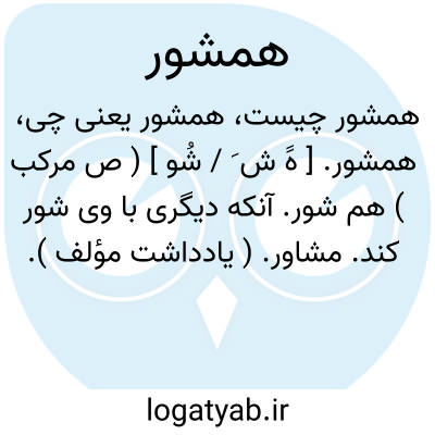 همشور. [ هََ ش َ / شُو ] ( ص مرکب ) هم شور. آنکه دیگری با وی شور کند. مشاور. ( یادداشت مؤلف ).