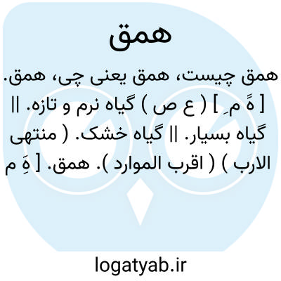 همق. [ هََ م ِ ] ( ع ص ) گیاه نرم و تازه. || گیاه بسیار. || گیاه خشک. ( منتهی الارب ) ( اقرب الموارد ).