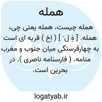 همله. [ هَِ ل َ ] ( اِخ ) قریه ای است به چهارفرسنگی میان جنوب و مغرب منامه. ( فارسنامه ناصری ). در بحرین است.