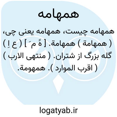 ( همهامة ) همهامة. [ هََ م َ ] ( ع اِ ) گله بزرگ از شتران. ( منتهی الارب ) ( اقرب الموارد ). همهومة. رجوع به همهومة شود.