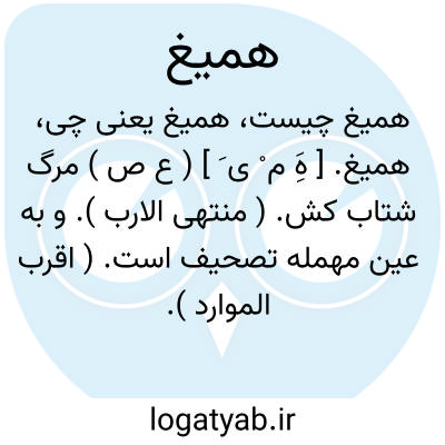 همیغ. [ هَِ م ْ ی َ ] ( ع ص ) مرگ شتاب کش. ( منتهی الارب ). و به عین مهمله تصحیف است. ( اقرب الموارد ).