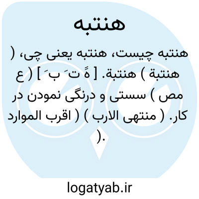 ( هنتبة ) هنتبة. [ هََ ت َ ب َ ] ( ع مص ) سستی و درنگی نمودن در کار. ( منتهی الارب ) ( اقرب الموارد ).