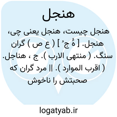 هنجل. [ هَُ ج ُ ] ( ع ص ) گران سنگ. ( منتهی الارب ). ج، هناجل. ( اقرب الموارد ). || مرد گران که صحبتش را ناخوش دارند. ( منتهی الارب ).