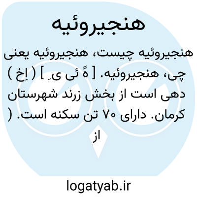 هنجیروئیه. [ هََ ئی ی ِ ] ( اِخ ) دهی است از بخش زرند شهرستان کرمان. دارای 70 تن سکنه است. ( از فرهنگ جغرافیایی ایران ج 8 ).